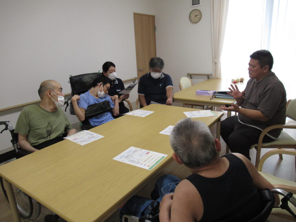 福祉の現場では、障害のある方が入所施設から地域へ移り、より自立した生活を営めるよう支援することが求められています。当園でも、地域移行を希望する利用者の方が、ソーシャルインクルー(グループホーム)に見学に行きました。居室やトイレ、浴室など見学し気になったことを質問していました。