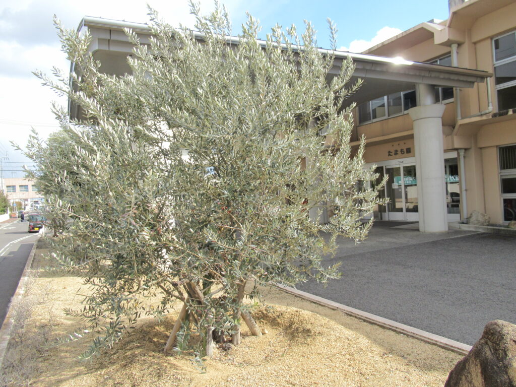 今年もオリーブの木に実がつきました。このオリーブの木は創立30周年記念で植樹されたものです。