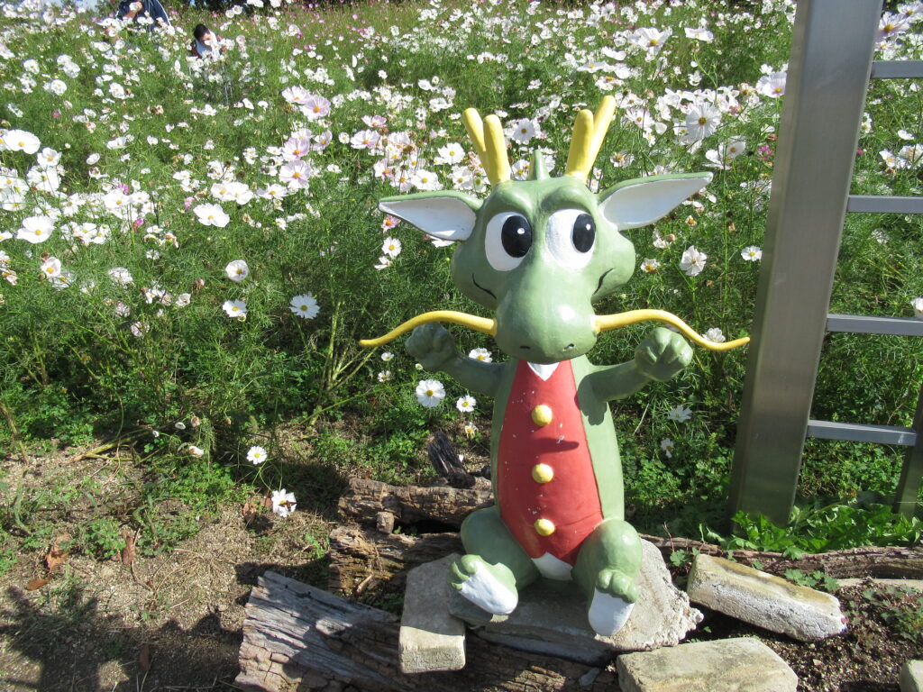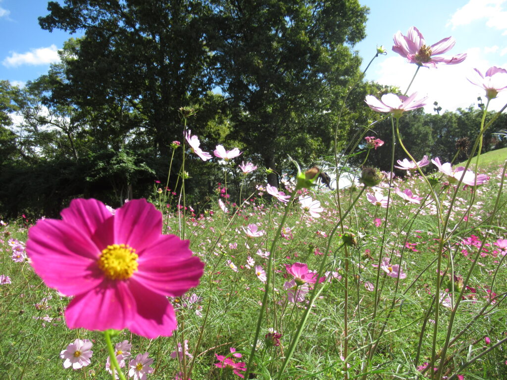 満開のコスモスや滝を見て自然を楽しみました。